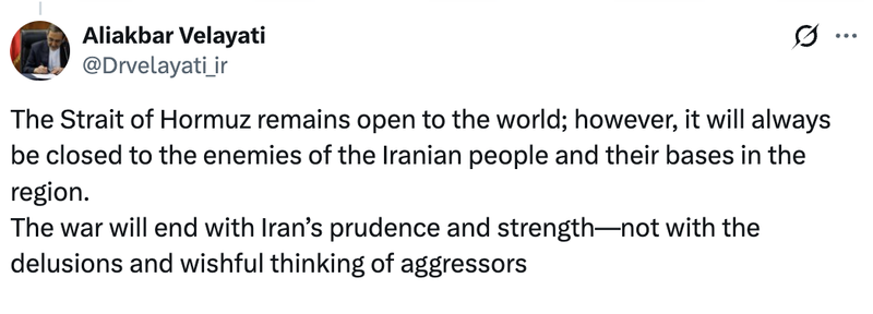 作者:admin2026年4月3日2026年4月3日对“伊朗最高领袖顾问:“霍尔木兹海峡将对伊朗人民的敌人永久关闭” – 新京报”作出评论 据央视新闻报道,当地时间4月2日,伊朗最高领导人外交顾问、前外长韦拉亚提在其社交媒体平台账号上表示,霍尔木兹海峡向世界开放,但将永远对伊朗人民及其地区基地的敌人关闭。韦拉亚蒂表示,冲突的结束取决于伊朗的决心和实力,而不是侵略者的欺骗或傲慢。 (记者李建男、李翔)编辑李伊林子