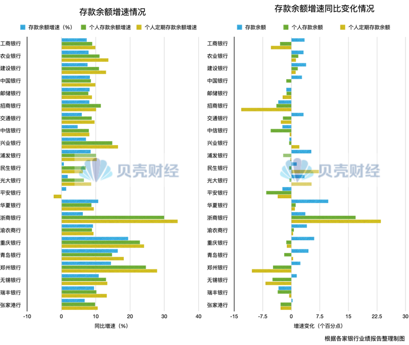 近年来,随着存款利率的下行,银行存款转移问题并没有消失。市场预计今年将有大量银行存款到期。在利率不再优惠的情况下,银行如何阻止存款“大规模外流”是今年财报电话会议的热门话题之一。庆幸的是,从上市银行的业绩数据来看,银行存款尚未出现大规模“流动”。然而,银行仍保持谨慎态度,银行存款利率较低的独特情况为缓解利润率压力提供了机会。与此同时,代理费、理财费等非利息收入也大幅增长。因低利率而被“浪费”的零售存款被回收,最终通过非银行金融机构(如基金公司、理财子公司等)的同业存款回归银行体系。 “部银行高管认为,银行打赢今年“存款稳定战”的关键是“获客”。资管等增值服务将是银行最亮眼的“王牌”。存款增速放缓,大规模“转移”现象并未出现。去年底以来,市场一直存在银行“存款转移”的担忧。不过,从上市银行证券报告数据来看2025年,目前正在发生的大规模“存款转移”并未出现,去年多家银行存款规模仍在扩大 据贝壳财经记者不完全统计,目前已有22家A股上市银行发布了2025年年报,存款总额同比增速达到7.31%。农业总公司中国文化银行、中国建设银行规模突破30万亿元。重庆银行、青岛银行、郑州银行、无锡农商银行、华夏银行存款总额增速均超过10%。但光大银行、平安银行、民生银行的存款增速则相对缓慢,增速均未超过2%。需要注意的是,市场对“存款转移”的关注主要集中在零售定期存款上。不过,从各家银行的业绩报告来看,去年个人存款余额同比增速为9.66%,个人定期存款余额同比增速也高达10.97%。这意味着银行存款正规化趋势没有改变。就是这个意思。但不少银行个人存款和个人定期存款余额增速有所下降。据贝壳财经记者不完全统计,22家上市公司中有17家d银行去年零售存款增速较2024年放缓。12家银行个人定期存款增速低于2024年。业内人士指出,大额存款银行存款2025年尚未到期,主要是很多定期存款今年到期。个人定期存款增速下降得益于银行主动调整、债务成本下降。存款可以小,但资金不能小。银行发起“资金保卫战”。据市场机构测算,今年银行业大量定期存款有望到期。银行业高管在银行业绩发布会上表示,去年下半年以来银行存款到期规模较往年有所增加,但仍处于正常范围内。 “从2025年下半年开始,中国银行定期存款期限规模不断扩大。”杨军 副院长中国银行有关负责人表示,中国银行对这些到期的定期存款进行了精心稳定和留存。交通银行副行长周万福也透露,今年该行定期存款到期金额较去年大幅增加,其中大部分集中在一季度。银行不建议通过利率同样高的定期产品持有这些存款资金。近年来,利率较高的定期存款规模较大,存款利率成为近年来压缩银行净息差的重要因素之一。因此,降低存款利率是必要的。银行如何持有这些资金? “所谓‘存款转移’,是指当年到期的定期存款消失的问题。”招商银行副行长彭家文表示,从托管mer的角度来看,招行希望通过其服务将这些资金保留在招行的系统中,假设存款流入理财和公共资金。不一定是资产负债表上的资金,而是招商银行的客户资金。也就是说,银行希望最终达到“存款可以流失,但资金和客户不能流失”的效果。转向同业业务、子公司等渠道。平安银行行长助理王军也表示,由于资本市场的变化和市场投资预期的改善,以及存款利率的走低,银行零售和个人客户的风险偏好发生了变化,相对激进的权益类产品占比明显增加。与此同时,对各种产品组合配置解决方案的需求也在不断增加。 “从结果来看,部分存款被“没有丢失,而是银行资产配置体系内的资产结构实现了更有效的转变。”王军表示,虽然2026年存款会出现一些变化,但平安银行会采取适当措施接受长期存款到期,不仅仅是以更高的价格续存存款,而是依靠线上线下一体化的资产配置服务,结合理财产品体系,配置到相应的客户需求。同时,我们将继续扩大存款规模。 22家银行的业绩报告显示,去年下半年以来,部分银行理财业务逐渐成熟,手续费收入转正,资金进入投资市场。EIR 2025年年报显示,手续费收入较上年正增长的有13家,去年年中实现正增长的只有8家。另一方面,去年底的同比增速高于年中。不少银行在财报中指出,去年手续费收入的增长主要得益于理财业务的增长。中国建设银行公布,去年资产管理业务收入153.41亿元,同比增长78.78%,主要是理财产品、基金管理费等收入增加。代理业务续展手续费收入153.04亿元,比去年同期增长6.19%。这主要是由于代理基金销售、债券承销和其他收入的增加。中国农业银行还指出,去年该行代理业务增长了87.8%。这主要是由于银行财富管理业务深度转型,财富管理和代理基金销售收入增加。理财子公司d银行理财产品规模也有所扩大。特拉华州数据显示,华夏金管去年规模较上年增长45.82%,中邮金管、民生金管、光大金管等多家理财公司规模较上年增长20%以上。此外,资产管理规模超万亿的银行数量已扩大至13家,其中招银理财以超过2.6万亿元的资产管理规模位居行业第一。理财数据完善后,银行高管对理财业务寄予厚望。多位银行高管在业绩会议上表示他们应该尝试将储蓄收益转化为资产管理收益。 “理财有很大潜力,商业银行也有很大潜力。”中国农业银行副行长林立在新闻发布会上表示,理