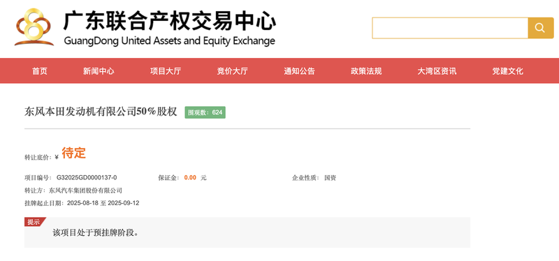北京新闻喙金融(King Linling Reporter)8月18日,广东联合意见中心的官方网站是Dongfeng Motor Group Co.,Ltd。(以下称为“ Dongfeng Motor”)将于8月18日开始并于9月12日结束。电影捕捉的50%将被出售。从清单上的信息来看,Dongfeng Honda Engine Co.,Ltd。是Dongfeng Motor和Honda Motor之间的联合公司,成立于1998年。其中,Dongfeng Motor拥有50%的本田技术行业公司,Ltd拥有40%和本田技术行业(中国)拥有10%。此外,上市文件的年度审计报告显示,对2024年的Dongfeng Honda Company资产的评估为54亿元,2.28亿元人民币在同一时期,负债超过32亿元人民币,目前拥有827名员工。 Dongfeng Honda EnGine负责开发,生产和销售汽车发动机,变速箱和组件,据报道,它提供了随后的服务相应的服务。它的年生产能力为480,000套电动机和650,000套零件。目前,中国市场的本田汽车销售承受着巨大的压力。 7月,中国市场的本田终端销售额为44,817辆,年际交往多14.74%。从1月到7月的累计销售额为359,969辆,年复一年下降仍超过两位数。编辑Yue Caizhou Profirion Reader Mu Xiangtong